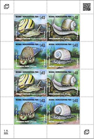 | BHC- 681/84 | Pic | Fauna 2025 (Snails). Block of 4v x1.40 | 01.11.25 | ||||