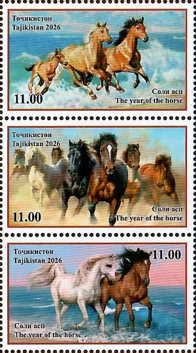 | TAJ-1306/08 | Pic | The Year of the Horse. Strip of 3v x 11.oo | ??.01.26 | ||||