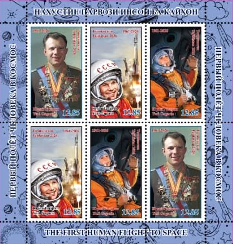 | TAJ-1312/14 | Pic | The First Human Flight to Space. Str of 3v x12.85 | ??.01.26 | ||||