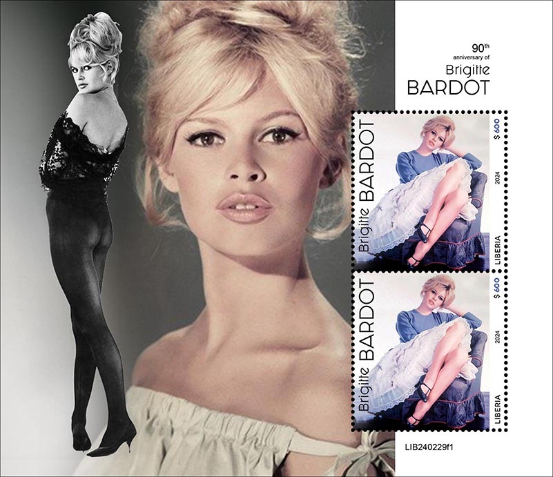 | LR24-229f1 | Pic | Brigitte Bardot. Sheet I of 2v x 600 | 25.06.24 | 8.40 | |||