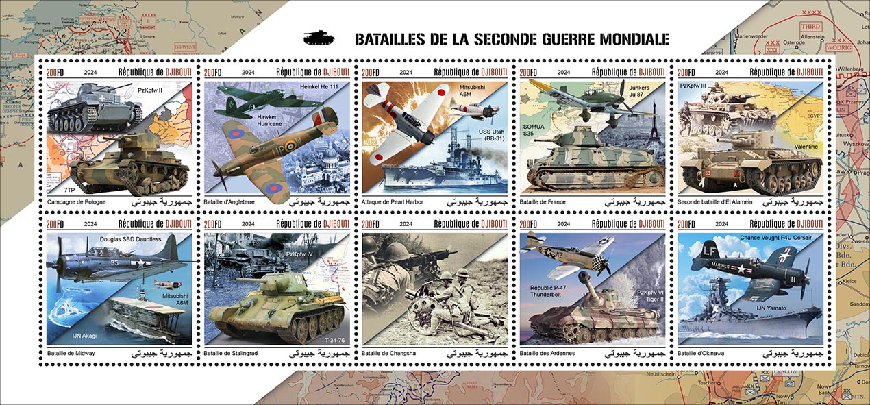 Battles of World War II. Sheet of 10v x 200 |