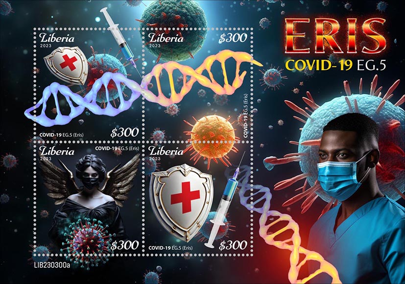| LR23-365a | Pic | Covid-19 ERIS EG.5. Sheet of 4v x 300 | 09.10.23 | 8.40 | |||