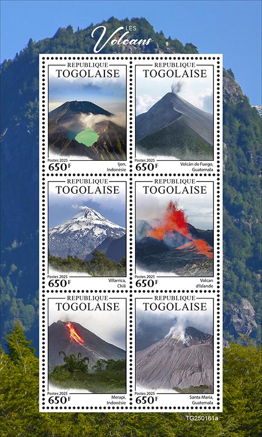 Volcanoes. Sheet of 6v x 650 |