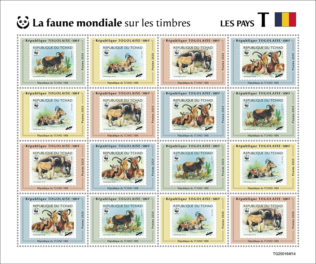 WWF on Stamps. Chad. Sheet of 16 x 500 |