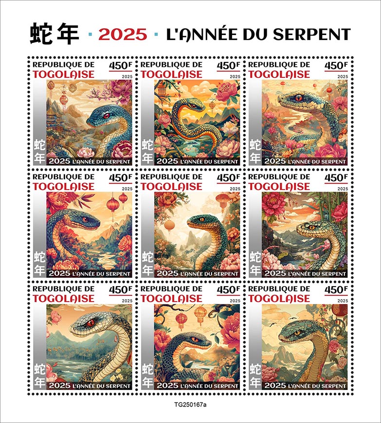 Year of the Snake. Sheet of 9v x 450 |