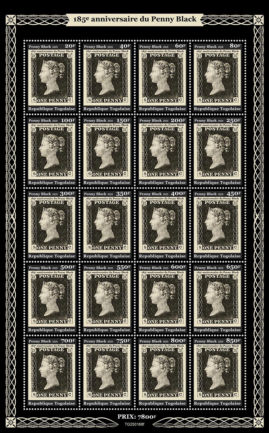 Penny Black. Sheet of 12v: 20,40,60,80,100,150,. . |