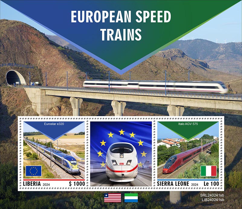 LR24-241a | Pic | European Speed Trains. Sheet of 3v x400 | 25.06.24 | 8.40 | |||