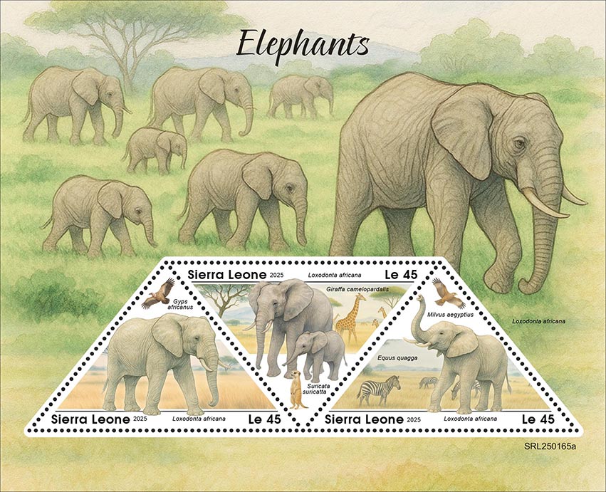 | SL25-165a | Pic | Elephants. Sheet of 3v x 45 | 15.01.25 | 8.89 | |||
