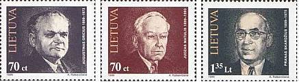 | LIT- 147-49 | Pic | Persons '96 (Grinius,Sruoga,Zmuidz.).3v:40, 1, 1Lt | 02.02.96 | 603-05 | 533-35 | ||