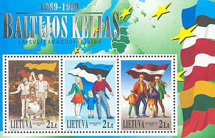 | LIT- 121/23M | Pic | Via Baltica (Parnu,Bauska,Kaunas). S/S of 3v x 1Lt | 20.04.95 | BL6 (577-79) | 509 | ||