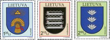 | LIT- 70-72 | Pic | COA of Towns '93 (Skuodas,Telsiai,.). 3v: 5,30,50 | 03.07.93 | 526-28 | 454-56 | ||