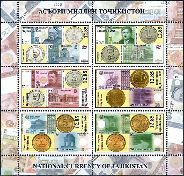 | TAJ-1298/03M | Pic | National Currency of Tajikistan. S/S of 6v x12.85 | ??.12.25 | ||||