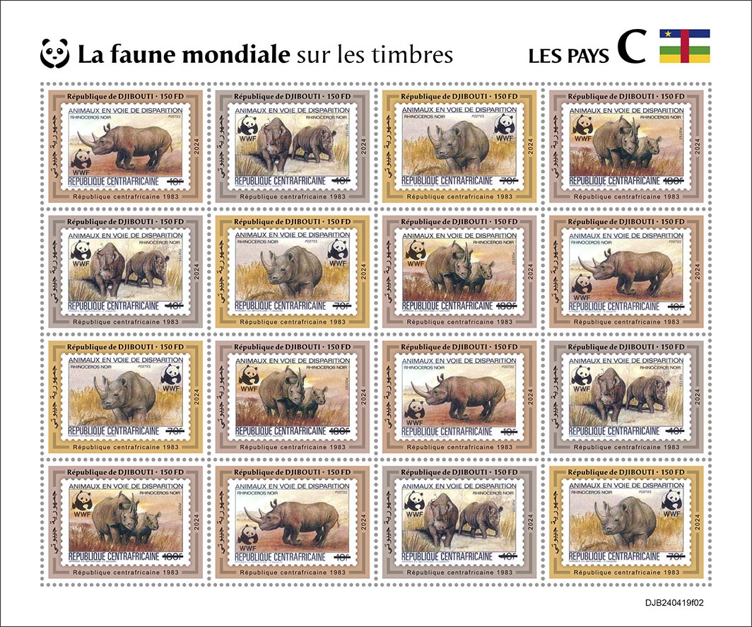 WWF on Stamps. CAR 1983. Sheet of 16 x 150 |