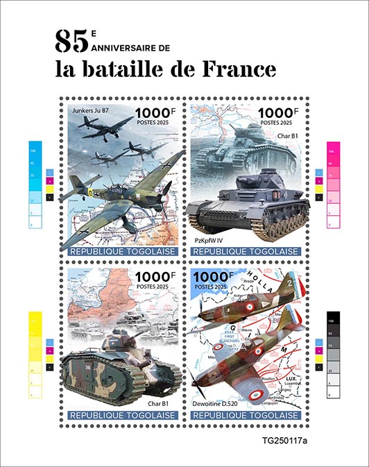| TG25-117a | Pic | Battle of France. Sheet of 4v x 1000 | 01.04.25 | 8.54 | |||