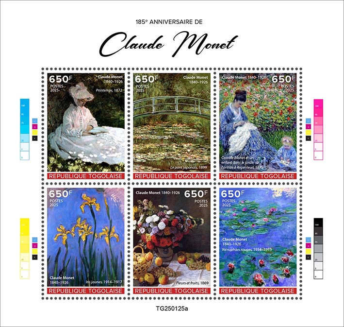 | TG25-125a | Pic | Claude Monet. Sheet of 6v x 650 | 01.04.25 | 8.40 | |||