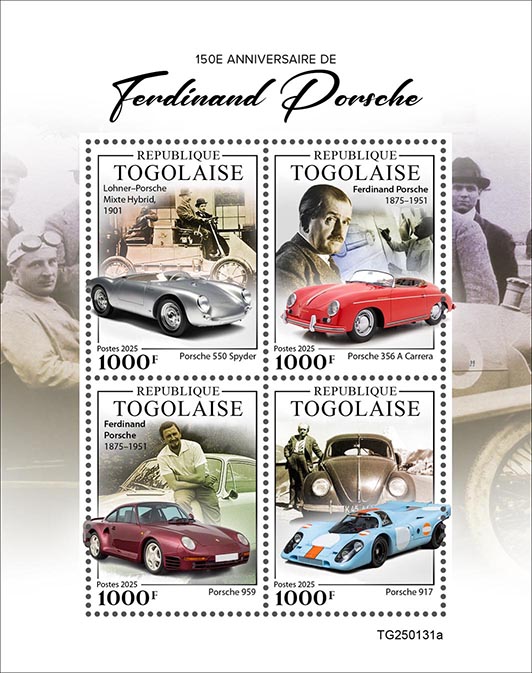 | TG25-131a | Pic | Ferdinand Porshe Cars. Sheet of 4v x 1000 | 01.04.25 | 8.54 | |||