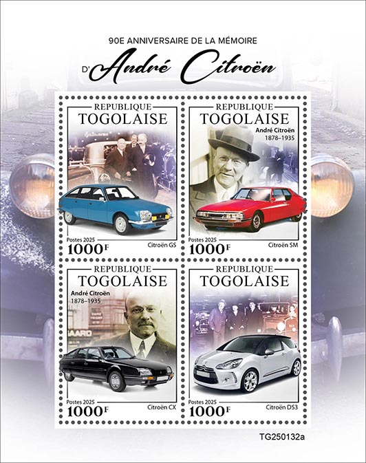 | TG25-132a | Pic | Andre Citroen Cars. Sheet of 4v x 1000 | 01.04.25 | 8.54 | |||
