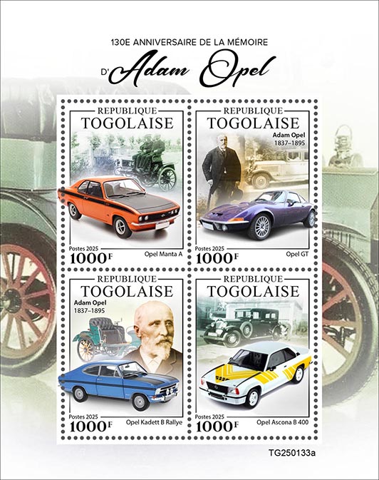 | TG25-133a | Pic | Adam Opel Cars. Sheet of 4v x 1000 | 01.04.25 | 8.54 | |||