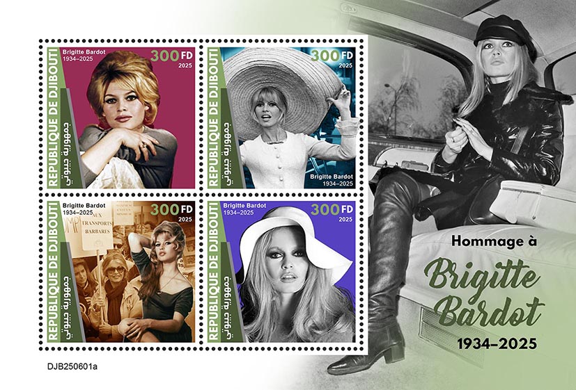| DJ25-601a | Pic | Brigitte Bardot. Sheet of 4v x300 | ??.??.25 | 8.82 | |||