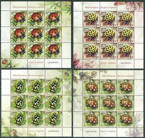 Insects. Ladybirds. 4 sheetlets, each of 9 |