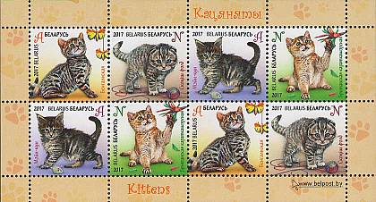 | BEL-1174/77R | Pic | Kittens. Sheetlet of 8 (2 sets). | 18.01.17 | 1169-72 ZdKB | |||