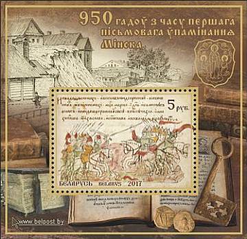 | BEL-1189M | Pic | Minsk-950 years of Written Reference. S/S: 5 rub | 03.03.17 | BL148 (1184) | 4.30 | ||
