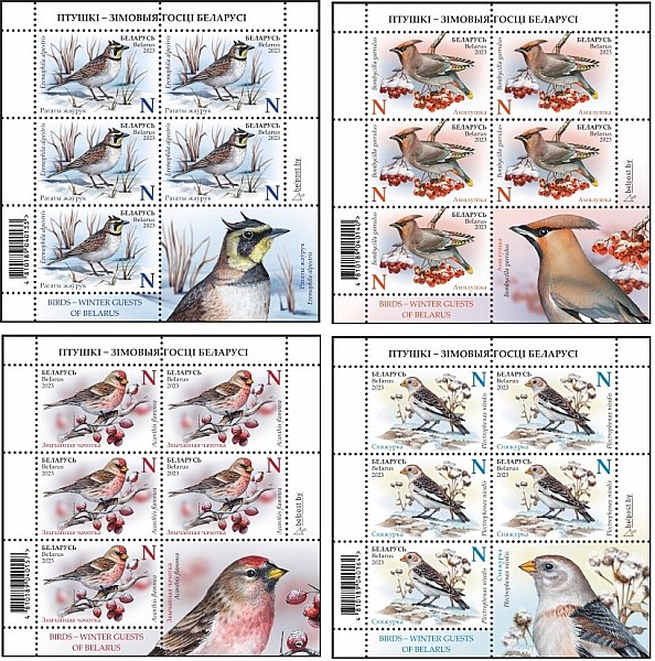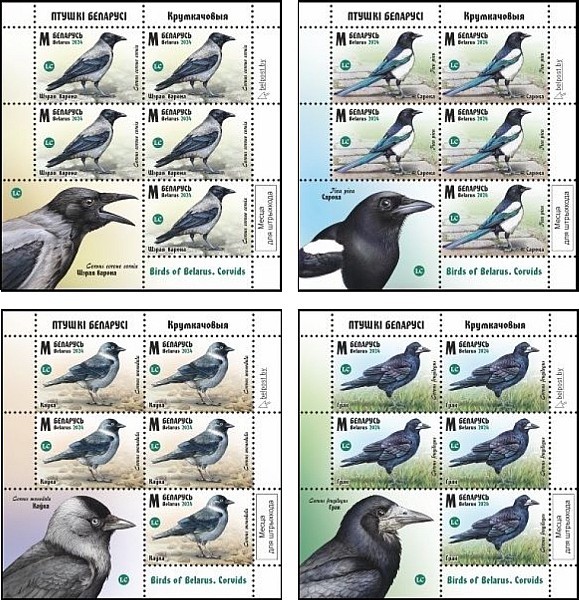 | BEL-1568-71Sz | Pic | Birds Corvids. 4 sheetlets of 5 stamps + tabs | 26.03.24 | ||||