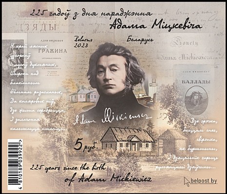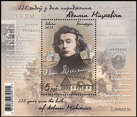 | BEL-1577Sz | Pic | Poet A.S.Pushkin (j/w Russia). Sheetlet of 5+tab | 06.06.24 | ||||