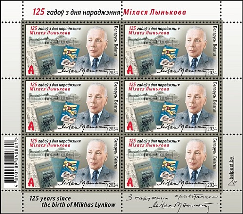 | BEL-1602S | Pic | Writer Mikhas Lynkov - 125. Sheetlet of 6 | 29.11.24 | ||||