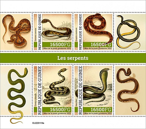 Reptiles of Guinea. Sheet of 8v x 30000 |