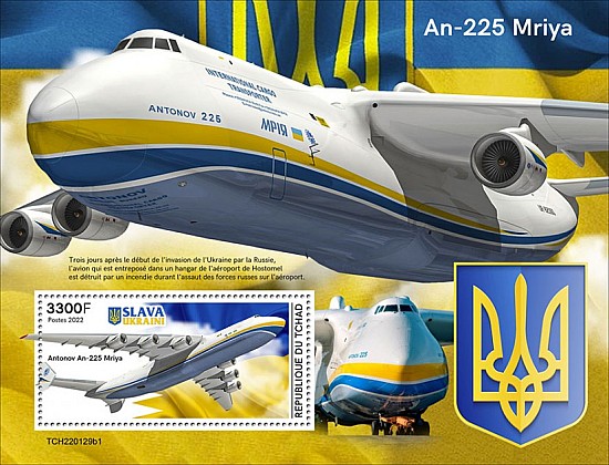 | CH-22129a | Pic | Aircraft AN-225 Mriya. Sheet of 3v x1200 | 09.08.22 | 7.70 | |||