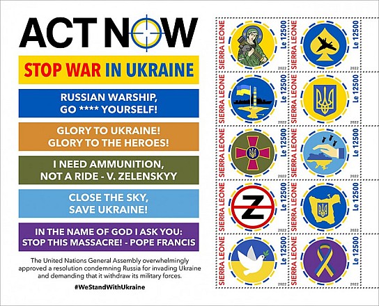 | SL23-236a | Pic | Russia's Invasion of Ukraine. Sheet of 6v x 22 | 20.03.23 | 8.75 | |||